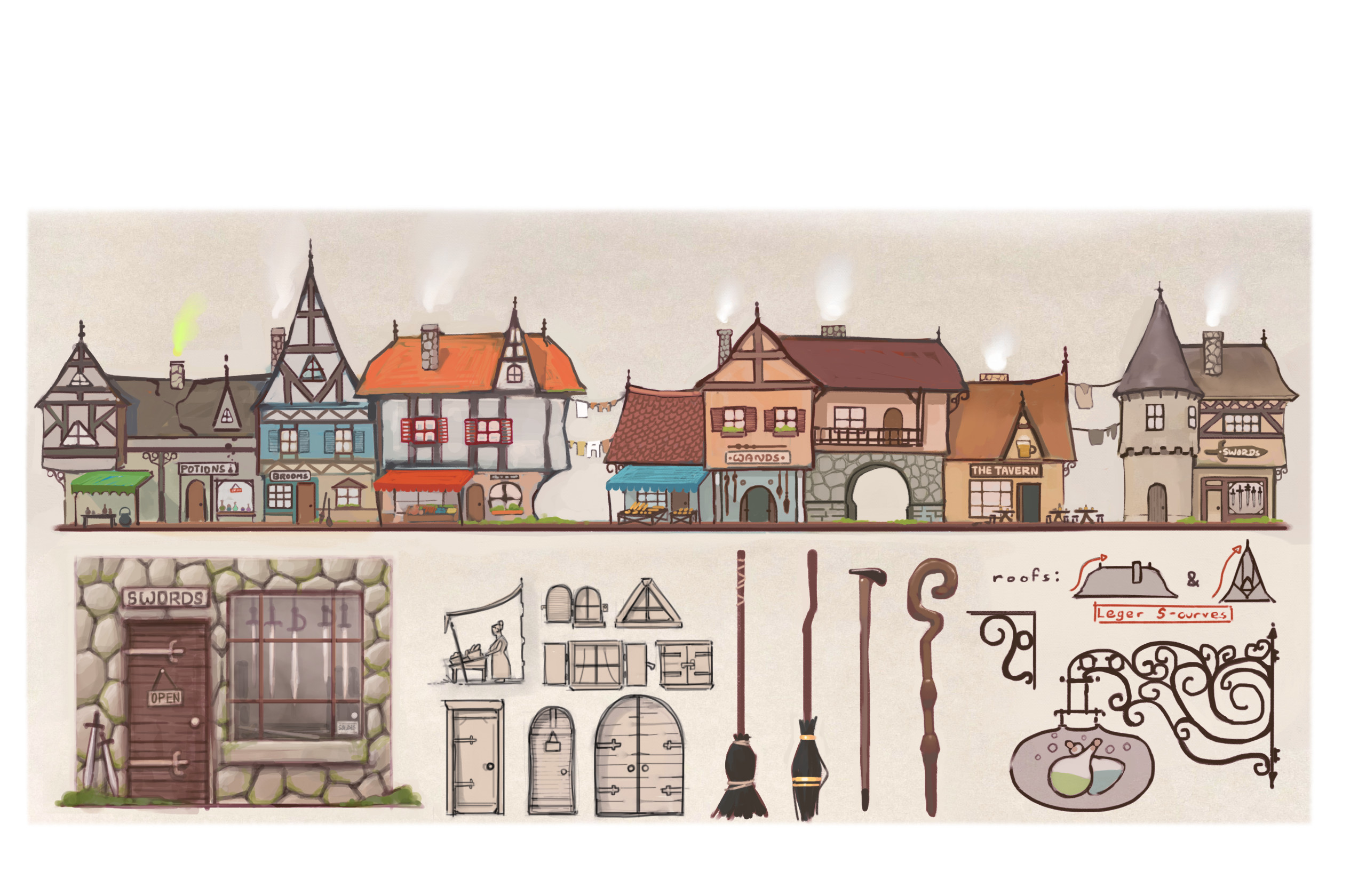Town concepts for 'Atchoum' short, a finalist at the Rookie Awards 2024.
